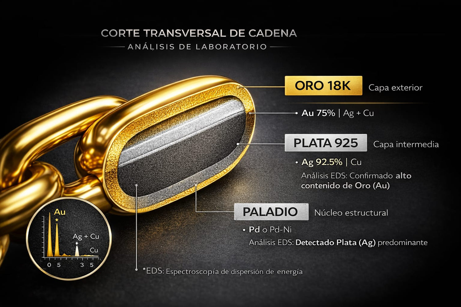 Esta cadena de 3 mm y 60 cm está pensada para quien valora los detalles bien hechos. Tiene el grosor justo para sentirse sólida, verse elegante y acompañar cualquier estilo sin esfuerzo.Está fabricada con una aleación premium de Oro 18K, Plata 925 y Paladio, lo que le da un brillo sobrio y una resistencia real al uso diario. No es una pieza llamativa por exceso, sino por calidad.Una cadena hecha para durar, verse bien hoy y atemporal.